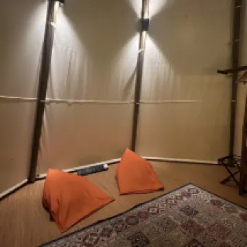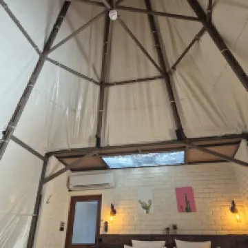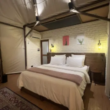 Палатка для глэмпинга красиво оформлена и предлагает уникальные впечатления без телевизора и телефона внутри палатки. Все общение осуществлялось через WhatsApp. Чистота палатки должна быть улучшена, так как мы видели муравьев, царапавших наши подушки, и насекомых, найденных на мешках с фасолью. Сейф не работает. Персонал вежливый и услужливый. Качество еды в ресторане было так себе. Хороший огромный бассейн. Палатки стояли рядом друг с другом, поэтому мы могли громко и четко слышать разговоры наших соседей. Следовательно, конфиденциальность может быть проблемой в этом случае.