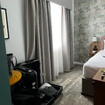 We stayed at this hotel for one night before catching a flight the next day. Upon entering the hotel, the reception area was lovely and smelt nice. Staff were friendly and informative. I wouldn’t say this hotel would be disabled friendly as it has many narrow hallways and steps and even if you had a lot of luggage if travelling you would struggle as the hallways are very narrow. But this is no fault to anyone as this is just the style of the building. When we got to the room it was fine for the one night we were staying but could’ve become very cramped if there any longer as the room was quite small however very clean. A few scuffs around the room which is just down to maybe being a big older and dated but doesn’t affect the stay really. You essentially are getting what you pay for. My only main point which I struggled which was mainly down to personal preference was how hard the pillows were. I struggled to get a goodnight sleep as the pillows were so firm and not supportive. There is also plenty of car parking around the back of the hotel! I would stay for a night if stopping over but no longer than that :)