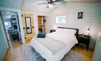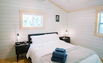The cottage is furnished with super comfy Queen sized beds. One bedroom has a memory foam mattress that is perfect for those who prefer a firm mattress, and the other bedroom has a hybrid mattress that is slightly softer.