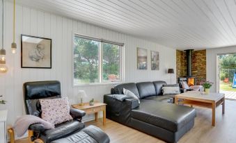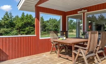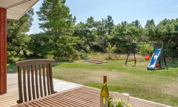 Single-family house, built in 1973. 1.5 km from the sea. Private: natural state property 2'428 m2. Terrace (61 m2), barbecue (slide, swing). In the house: sauna, washing machine, tumble dryer. Parking at the house. Grocery 2 km. The owner does not accept any youth groups. "Thorvor" - 1.5km from the sea", 3-room house 95 m2. Object suitable for 6 adults. Living room with TV. 1 room with 1 double bed. 1 room with 2 beds. 1 room with 1 double bed. Kitchen (oven, dishwasher, 4 induction hot plates, microwave, freezer). Shower/WC, hydro massage bath. Terrace 11 m2, roofed. Facilities: children's high chair. Internet (WiFi). Please note: non-smokers only. Maximum 1 pet/ dog allowed. 573-101168