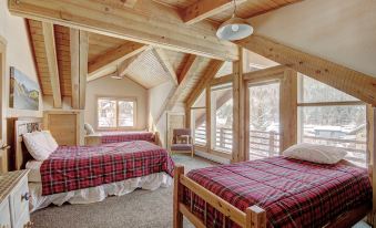 Cook Family Lodge comfortably accommodates up to 10 guests across its 4 spacious bedrooms and 3 baths. The main level hosts a king bed in the expansive master suite and a queen bed in the second bedroom. Upstairs, a charming room features 1 full and 2 twin beds – perfect for kids or singles. The lower level boasts a bonus fourth bedroom with a second king bed for added privacy.