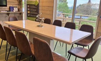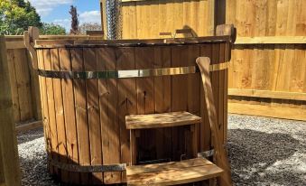 Private enclosed garden with wood fired hot tub, dining space & barbecue. A Sauna and Spa area will be available from late June/ early Jul 2025 (date TBC). An additional meeting room / events space is also available to book.