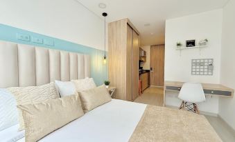 Почувствуйте себя как дома в одном из 40 номеров с индивидуальной меблировкой. кухни оснащены следующим оборудованием: холодильник и микроволновая печь. Чтобы вам не пришлось скучать, в номерах установлены телевизоры Smart TV с диагональю 43 дюйм., на которых можно смотреть цифровое телевидение, а бесплатный беспроводной доступ к интернету позволяет всегда оставаться на связи. Предоставляются следующие удобства и услуги: письменные столы и кофеварки/чайники.