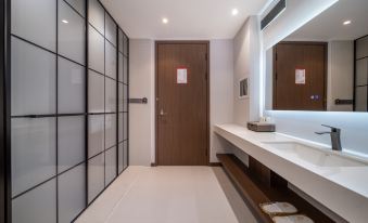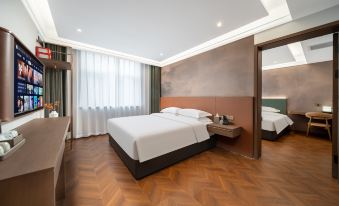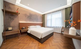Yushang Hotel · Serenity Residence inherits the cultural essence of Yushang merchants and blends Eastern Zen aesthetics, offering a tranquil retreat amidst the bustle. The hotel's architecture features wooden frameworks and ink-wash charm, with guest rooms adorned by celadon reflections and sheer drapes, while public areas are graced with minimalist rock gardens and calligraphic couplets—each step unveiling the Eastern philosophy of "slowness and stillness." Awaken to savor Henan tea by the window, watch dawn light filter through carved lattices, and let ink fragrance mingle with cicada songs, leaving worldly cares behind. Here, guests can immerse in the profound heritage of Yushang culture while finding inner peace through Zen-inspired elegance, experiencing the refined artistry of classical Chinese living.