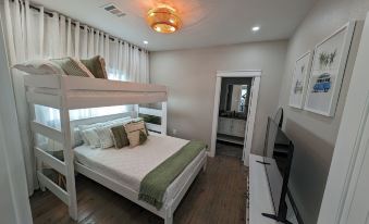 The Villa sleeps up to 7 guests, featuring a bunk room that sleeps 3 with a twin over queen bunk bed, a queen bed in the second full bedroom, and a queen pull-out couch.