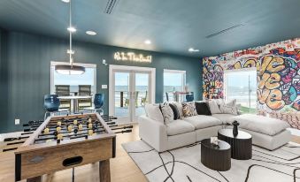 Game room - 5.1 surround sound hearing and movie viewing, foosball table, arcade game box full of your childhood memory games, PlayStation 5 and Xbox-X with controllers for each and some of your famous household board games