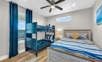 - Bedroom 2: Queen bed with twin bunk beds