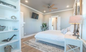 The main floor Master Bedroom is equipped with a King Bed with the Luxe Helix Sleep Mattress (It's amazing, btw.) and a 43" Roku Smart TV. The Master Bathroom includes a His/Hers sink setup as well as both a whirlpool tub and a walk-in shower, water closet and also a large Master closet. Blow Dryers are included in every bathroom. *As an extra treat, the Master Bedroom has an adjacent outdoor lanai that is great for mornings, a little quiet time or your evening wine'd down.