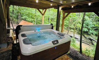The outdoor space is equally spectacular, offering over 350 square feet of decks, porches, and screened-in patios. Imagine sipping your morning coffee to the soothing sounds birds chirping. Grill a few steaks on the back deck while marveling at the rocky cliffs and cascading water, over 40 feet above the creek below. And, of course, there’s a hot tub to help you relax those muscles and take away your cares.