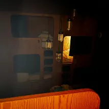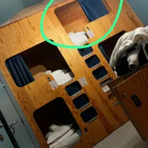 Кровать интересной формы имела занавески и освещение, поэтому я смогла сохранить свою конфиденциальность, что было здорово. Душевая комната также была очень чистой.