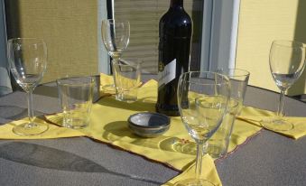 The living-dining area has a direct access to the spacious, partially covered, terrace. Patio furniture and a small grill, are naturally available. The adjacent large lawn and deck area is ideal for relaxing for the parents and games for the children. The apartment has Wi-Fi.