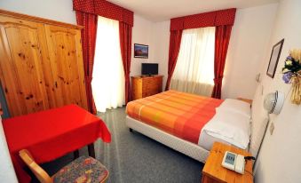 La mia esperienza in questo hotel è stata estremamente deludente. STANZA: Al mio arrivo, la stanza si presentava in condizioni decisamente poco igieniche: le lenzuola erano visibilmente sporche e davano l'impressione di non essere state cambiate(vedere foto allegate). Inoltre, la pulizia generale della camera lasciava molto a desiderare: polvere ovunque, pavimenti ricoperti di moquette sporca, tanto che abbiamo dovuto pulire tutto noi stessi con alcool. Ci è stata cambiata la camera con una piu' pulita per fortuna. Il bagno era risalente agli anni 80 con rubinetteria senza miscelatore e quindi che esce bollente da un lato e fredda dall'altra. Come se non bastasse, le gambe del letto erano rotte (vedere foto), un dettaglio che non solo è inaccettabile a livello di comfort, ma che rappresenta anche un potenziale rischio per la sicurezza sia per me con la mia bambina sia per i miei genitori. Dalla proprietà non ci è mai stato espresso un dispiacere per il disagio. IMPREVISTO: Durante il soggiorno, sono rimasta bloccata nell'ascensore insieme alla mia bambina a causa del malfunzionamento dell' impianto che era visibilmente vecchio, rumoroso e obsoleto(confermato anche dal tecnico ascensorista arrivato per ripararlo). Un episodio che ha causato grande paura e disagio visto che sono dovuti intervenire i pompieri per farci uscire. Un ascensore rotto in una struttura che ospita famiglie è un grave problema di sicurezza, non solo un disservizio. È impensabile che in un hotel cosi centrale con 4 piani di stanze non venga sostituito con uno piu moderno e sicuro(ho letto recensioni di anche 7 mesi fa che parlavano delle stesse pessime condizioni). ***Non ci è stato nemmeno chiesto scusa dalla proprietaria per l'imprevisto della rottura dell'ascensore, non tanto per me ma per la bambina piccola che era con me all’interno. Ci è stata offerta una bottiglia di vino invece, inutile, avremmo preferito un po di empatia umana.*** Non consiglio assolutamente questa struttura: se non sono in grado di garantire nemmeno la sicurezza dei propri ospiti, è meglio evitare, fino a quando non verranno risolti questi gravi problemi. Ovviamente la pulizia andrebbe totalmente rivista e migliorata.