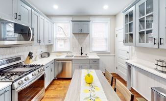 Home was lovely. We didn’t realize until we arrived, but you are actually renting a first floor apartment from a family who lives on the top two levels. We had our own private entrance and complete privacy the entire time. We enjoyed having the owner on property because we were able to do a grocery delivery the first day (even though our flight was delayed) and they were able to replenish the toilet paper during the week. The kitchen was well stocked and we were able to do laundry down in the basement. It wasn’t ideal sharing a bathroom with four kids for a week, but there aren’t many 2 bath options in the area. We only rode the commuter train one day (as it serves South Station only and we did most of our activities in North Boston) but the walk was easy and convenient. If you are headed to the Boston Tea Party museum, the trolley tour with 1st pickup near one of the hotels or the Children’s Museum (both we highly recommend for ages 4-11) then the commuter train to South Station is great… otherwise, just plan to use Uber or Lyft. Because the house is so far away from downtown Boston, be prepared to pay $30-$40 per trip for an Uber XL to and from the house. We loved the neighborhood. It was safe and there is a fun park within walking distance for the kids. We also enjoyed eating at Sofia’s Grotto the night we arrived as it was only a 12 minute walk from the house and right next to a grocery store. Overall, we had a great time! Hospitable hosts!