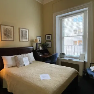 Больше всего меня привлек редкий и уютный дизайн интерьера; я настоятельно рекомендую этот отель всем, кто любит такой стиль! Расположение отеля также превосходное: прямо рядом с прекрасным Бостонским садом, очень близко к фешенебельному району Бикон-Хилл и оживленной улице Ньюбери — все в шаговой доступности. Здесь действительно комфортно; в этом районе нет бездомных, и ночью здесь очень тихо, что позволяет хорошо выспаться. Единственный недостаток — ванные комнаты общие; примерно четыре семьи пользуются одной ванной комнатой на этаже, что не очень удобно, и тем, кто особенно щепетилен в вопросах гигиены, следует это учитывать. Однако этот фактор учтен в цене, поэтому я рекомендую этот отель всем, кто любит такой стиль.