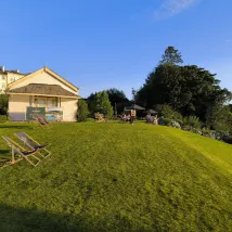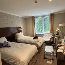 My husband and I stayed here in one of the larger posh 4-poster bed rooms for 2 nights nights. It is an ideal location, being a very short walk from the village high street, across the road from the harbour with beautiful lake views, but tucked high enough away from any street noise. And because it's a proper hotel, the room we booked was large enough, and even had a bidet. There was adequate parking, a lovely full English breakfast buffet, and a fancy bar and restaurant onsite. The only downside was that the lift was broken, so we had to climb to the top floor many times a day, and construction was taking place on site, but that was quiet for us as our room was around the other side of the building. If you're there in the dead of summer, there was no AC. (Just a heads up in case you're from the states and used to it all hotel rooms) Not currently any pool or hot tub at the time of typing this.