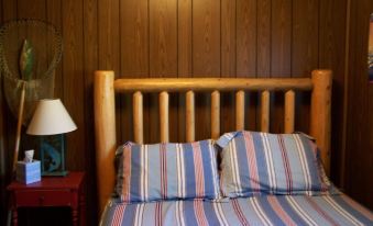 Master bedroom features a king sized log bed. Two additional bedrooms have queen sized log beds. The bunk room is an great spot for the kids with a log bunk bed, full sized on the bottom and twin on the top. The room also has a twin day bed and a pull out couch. Perfect for adults as well.