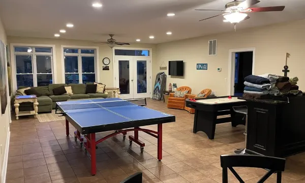 Evening options include the Stone Firepit, Oversized Screened Porch, Ping Pong, Air Hockey, Pool Table, Board Games/Puzzles and/or enjoying a movie or sporting event screened in your own Stadium-Seat Home Theatre!
