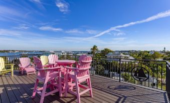 On the upper level, the rooftop deck awaits, providing ample seating and standing room for everyone to witness the unforgettable sunrises over the intercostal waterway, and the incredible sunsets over the Gulf of America. Immerse yourself in the soothing echoes of live music from Bridge Street, all from the comfort of your own vacation home.