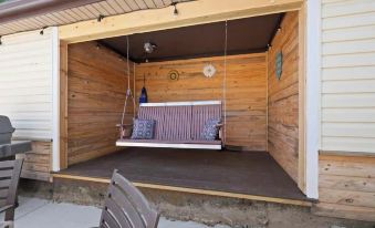 Outdoor Delights: Embrace the great outdoors in our lovely outdoor dining space, perfect for al fresco meals under the stars. Fire up the gas BBQ and savor a grilled feast, then challenge your friends or family to a friendly game of corn hole. The extra porch with a swing is ideal for morning coffee or evening relaxation, providing a peaceful spot to unwind and take in the fresh air.