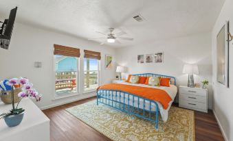 ♛ Bedroom 4: One king bed and one trundle daybed with ensuite bathroom, ceiling fan, TV and views of the beach from the walk out deck. (Sleeps 4)