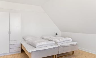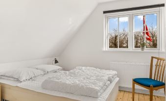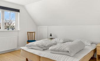 Single-family house, built in 1951. 12 km from the sea. Private: natural state property 75 m2. Barbecue, children's playground. In the house: washing machine, tumble dryer. Parking at the house. Carport. Grocery 1.6 km. The owner does not accept any youth groups. "Freja" - 12km from the sea", 4-room house 90 m2. Object suitable for 8 adults + 1 child. Living room with 1 double sofabed and TV. Kitchen (oven, dishwasher, 4 ceramic glass hob hotplates, microwave, freezer). 2 showers/WC. Upper floor: 1 room with 1 double bed. 1 room with 1 double bed. 1 room with 1 double bed. View of the sea. Facilities: children's high chair, baby cot. Internet (WiFi). Please note: non-smokers only. Maximum 1 pet/ dog allowed. 550