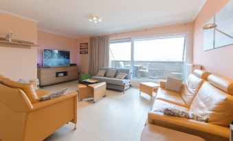 Modern, comfortable apartment block "Parklane", 3 storeys, built in 2011. 700 m from the centre of Bredene Aan Zee, in a quiet, sunny position, 250 m from the sea, 200 m from the beach, road to cross, south-west facing position. In the house: lift, storage room for bicycles. Supermarket 800 m, shopping centre 3 km, restaurant 700 m, bicycle rental 750 m, tram "Kusttram De Lijn" 750 m, bus stop "De Lijn" 50 m, railway station "Station Oostende" 4 km, sandy beach "Twins" 250 m, indoor swimming pool 2 km. Marina 3 km, surf school 200 m, tennis 1 km, minigolf 1 km, riding stable 3 km, children's playground 600 m. Nearby attractions: Hangtime 1.5 km, Fort Napoleon 2 km, Sealife Blankenberge 17 km, Plopsaland De Panne 33 km, Oostende 4 km, Brugge 23 km. Hiking paths: Beeweg, Duinpanpad, Spuikompad. The owner does not accept any youth groups. The keys‘ handover takes place by the agency Interhome in Bredene. Neighbourhood highly sensitive to noise. Quietness and good behaviour expected. "Paul's parklane", 3-room apartment 125 m2 on 2 levels on 3rd floor, south-west facing position. Spacious and bright, luxurious and cosy furnishings: entrance hall with separate WC and electric heating. Open living/dining room with open-hearth fireplace, dining table, digital TV, international TV channels and DVD. Open kitchen (dishwasher, 4 ceramic glass hob hotplates, toaster, electric coffee machine, combination microwave). Upper floor: 1 large double bedroom with 1 double bed (160 cm, length 200 cm). 1 children's room with 1 x 1 bunk beds (90 cm, length 200 cm), 1 pull-out bed (1 pers. 2 x 90 cm, length 200 cm). Bath/shower, sep. WC, double hand-basin. Balcony 7 m2, south-west facing position balcony 5 m2, north-east facing position. Balcony furniture. Beautiful view of the town. Facilities: washing machine, dryer, baby cot, hair dryer. Internet (WiFi, free). Please note: non-smokers only, non-smoking house.