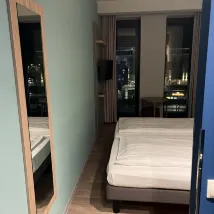Ответ от объекта размещения: Dear Guest,Thank you for taking the time to give us your feedback.We're pleased to hear you found our central location convenient for exploring Bremen.However, we regret that certain aspects of your accommodation didn't meet expectations. Our compact rooms are designed for affordable comfort, though we understand this layout might feel constrained. Regarding amenities, our 24-hour reception team is always available to assist with any immediate needs during stays.We hope you were able to appreciate our recent upgrades since opening in 2019, particularly the soundproofing features that help ensure restful nights in the city center.We look forward to welcoming you back.Best wishes,Your Team of Ibis Budget Bremen City Center