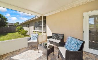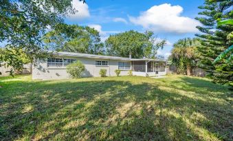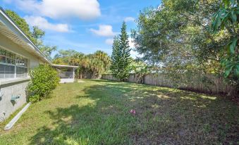 We are happy to share our beautiful, sunny Rockledge home with room for 8 and all modern amenities. Perfect for hosting and enjoying a nice family vacation or a get away with friends, with a spacious living room, large bedrooms, modern kitchen with all stainless steel appliances. Engineered hardwood floor in living room and all bedrooms. Tiled kitchen and dining room. Large front and back yard with shady Oak trees. Screened in Lanai to relax with a book or have dinner with your family.