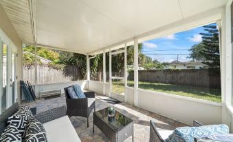This stylish single-level bungalow home features warm wood floors, gentle lighting, high-end furniture, Turkish rugs, and well-thought-out decor. Spacious dining room connects effortlessly to the screened-in patio, offering a generous and dynamic space for indoor/outdoor lounging with loved ones, while the backyard offers plenty of space for stretching out and soaking in Florida's abundant sunshine.