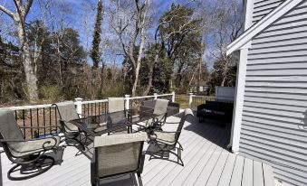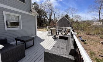 Enjoy our 4 bedroom, 2 bath Cape home and comfortably sleep the whole crew! You'll love the large yard and oversized brand new deck with a dining area as well as outdoor couches and outdoor shower. Make s'mores by the fire pit!