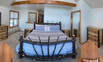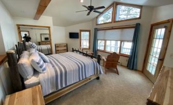 Next to the master bedroom is one of the three upstairs bedrooms that offers a king bed and adjoining full bathroom with views overlooking the lake.