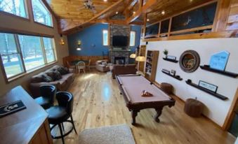 Nate's property was all that we hoped for and more! The home was perfect for our family. The location on the lake is great. It is just behind Scout Island toward the bottom of the main part of the lake. It was easy to get to from both land and lake. Boat launch is just a couple miles north (Broadalbin). The dock fit both of our boats perfectly and we enjoyed using the 2 kayaks that came with the property as well. Plenty of parking for our 5 vehicles and 2 boat trailers. The yard was spacious with plenty of room to play yard games or hang out by the firepit. The sunsets were AMAZING as advertised! The main living area was great and the game room even better! Bedrooms and loft were comfortable for sleeping as well and there were air conditioning units throughout the house. Although the house has beds enough to sleep 16 people, the listing says 12 and I suspect that is because of the well water only being able to support that many showers, toilet flushes, laundry, dishes, etc. Any more than 12 and there would likely be issues with water flow and pressure. We had one storm come through during our week which caused a quick power surge that affected the well pump. Nate was quick to respond to the issue and had a guy at the house to remedy the situation quickly. The house was well equipped with games, puzzles, kitchenware, etc. I would highly recommend this listing for anyone wishing to visit Lake Sacandaga. Nate was a fantastic host and we hope to return again next summer!