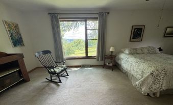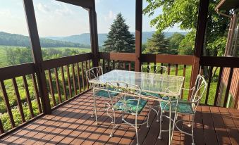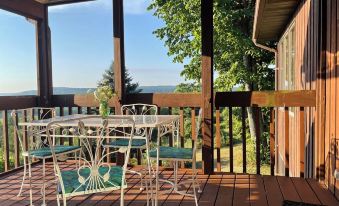 Relish the solitude of our hilltop home while you listen and view songbirds such as the Eastern Phoebe, Yellow Warbler, Cedar Waxwings and Indigo Buntings and more. The night sky is also perfect for stargazing. Located near Hallstead, this house is a dream with a spectacular panoramic view of seven mountains that fold into one another. With 3 bedrooms, including 2 queen beds and 2 twin beds, our pleasant property offers a superb stay for guests. The upstairs bathroom is equipped with a shower and bathtub, downstairs BR with a shower. You'll find all the essentials like WiFi, a washer and dryer, and AC. Our place will help you feel at home while you're traveling near Binghamton or the Endless Mountains.