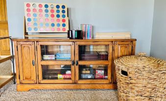 The lower floor has a great space for watching movies or playing games with the family. There are two basement bedrooms each equipped with a with a queen bed and triple bunk.