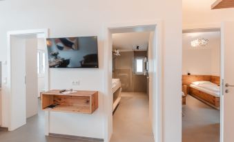 Comfortable apartment block "Das Georgen", built in 2020. 4 apartments in the property. In the district of St. Georgen 5 km from the centre of Bruck, 10 km from the lake, 10 km from the skiing area. In the house: WiFi, storage room for bicycles, storage room for skis, washing machine, tumble dryer (for shared use), ski boot dryer. Shop 5 km, restaurant 500 m, bakery 1 km, bus stop "Bahnhof Gries" 1 km, railway station "Bahnhof Gries" 1 km, outdoor swimming pool 7 km, lake Zeller See 10 km. Ski lift 10 km, gondola lift 11 km, cross country ski track 4 km. Well-known ski regions can easily be reached: Kitzsteinhorn 11 km, Rauris 17 km. "Das Georgen, Großglockner", 3-room apartment 62 m2 on 1st floor. Comfortable furnishings: living/dining room with 1 double sofabed and TV (flat screen). Exit to the balcony. 1 double bedroom. 1 room with 2 beds and TV (flat screen). Open kitchen (dishwasher, 4 ceramic glass hob hotplates, toaster, microwave, electric coffee machine) with dining table. Shower/WC, sep. WC. Underfloor heating. Balcony. Balcony furniture, box-room. Facilities: iron, baby cot. Internet (WiFi). Parking (roofed, 1 car). Please note: non-smokers only. 1 pet/ dog allowed. Smoke alarm. When there are less than the maximum number of guests staying at the property, not all of the housing units will be available for use. 50602-000341-2020