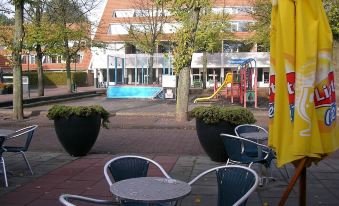 The park has an indoor pool with a giant slide, a children's paddling pool, a sun terrace, bike rental, slot machines, bowling alley and squash hall.