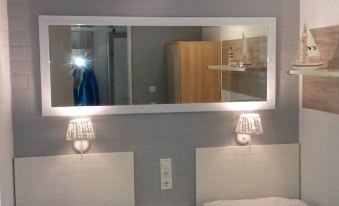 1 bedroom with 2 single beds and another bedroom with a double bed. The entire house is equipped with an easy-care, high-quality and warm vinyl floor.