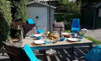 There is also a free WiFi connection in the FH. You can reach the terrace from the living room. A barbeque charcoal grill is available. In the garden house you will find terrace chairs and loungers. You can store your own bicycles locked here.