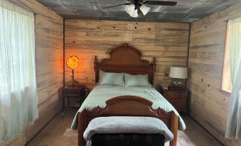 An amazing property - much thoughtfulness and ingenuity went into utilizing an existing old cabin, then adding a large bedroom on one side and the eat-in kitchen, bathroom and laundry are on the other side. EVERY thing we needed was at our fingertips! Front & back porches complete with ramp into the back door - even a hammock in the back yard. Host even brought fresh garden products for us to enjoy! WOW- & Dollar General 4 miles away met all our needs.