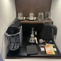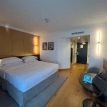 Номер оказался очень комфортным: большая кровать, отличная звукоизоляция, качественное постельное бельё, кофемашина и продуманные мелочи. Ванная комната — просторная, с хорошей косметикой и мягкими полотенцами. Уборка — на отлично.