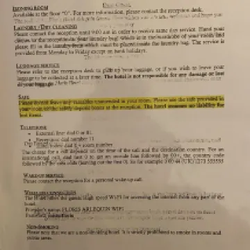 Он писал про прачечные и глажку, но оказалось, что он сам ходил в прачечную, смеялся! Низкий напор воды, горячая вода и холодная, старые отели, запахи повсюду, лифты устарели на десятилетия, в общем, цена и качество несоответствуют, просто удобное расположение, можно просто осмотреть и купить что-нибудь.