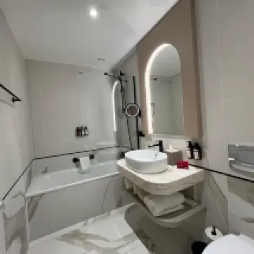 Единственный минус — немного запятнанный ковёр (возможно, его сложно содержать в чистоте), в остальном всё остальное было очень чистым и приятным. Также имейте в виду, что отель может не подойти тем, кто чутко спит, так как шум дороги очень громкий, и каждый час раздаются громкие гудки и вой сирен.