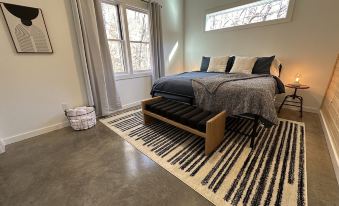 Welcome to our modern oasis nestled just a 10 minute drive from downtown Asheville, NC, on the scenic Shope Creek Road in the east Asheville area! This brand new, stylish, and modern 1-bedroom house is equipped with a comfortable king-sized bed and also features a dedicated office space containing a convenient day bed, providing sleeping accommodations for up to 4 guests.