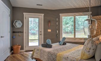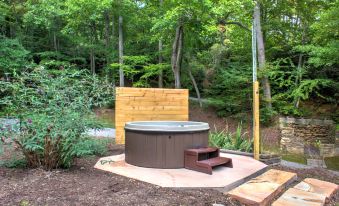 Whether you're seeking sanctuary or adventure, Asheville Roundhouse is an ideal mountain vacation rental to call home away from home. Nestled into a peaceful property southeast of Asheville, this eco-friendly round house pleases with modern exquisite decor and comfortable furnishings that welcome you to relax. The fully-equipped stunning kitchen affords you the opportunity to prepare your favorite meals or wrap something up for a picnic on the Blue Ridge Parkway. This home also lends itself to the ability to get work or hobbies accomplished or to tap into the creative vibe that resonates. There is high speed internet and various options for productive time either inside the home or outdoors on the front deck or in a comfortable Adirondack chair alongside the gas Fire Pit. The outdoor space at Asheville Roundhouse is ideal for taking advantage of the mountain weather. Pick a seat on the deck and soak up the sunshine while listening to the birds sing. With double doors encouraging fluid movement from inside to outside, the large deck places you in a paradise of ever-changing, undisturbed natural beauty, the perfect spot for outdoor dining and grilling. With both easy access and the feeling of absolute privacy, this home offers a huge yard bordered by woods that's perfect for stretching your legs. Travelers seeking inspiration will fall in love with Asheville Roundhouse and look forward to returning again and again!