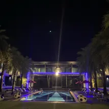 Размещение очень чистое. Комната внутри очень красивая. Есть фотография футболиста. чистый бассейн Внизу есть бар, где можно выпить. Погода хорошая и тихая.