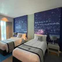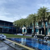 Было приятно увидеть отель, оформленный в футбольной тематике. Номер просторный, чистый и имеет все необходимые удобства. Комната полностью укомплектована, фурнитура высокого качества. Рекомендуемое место для проживания в Бурираме