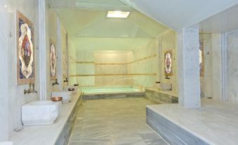 Termal havuz ve hamam bölümüne günübirlik müşteri de geldiği için, kalabalıķ olabiliyor. Bayan bölümünde bonesiz havuza girişin olması, öncesinde duş ya da su ile yıkanma durumunun denetlenememesi, kuralların olmayışı, hijyen konusunda tereddüt yaratıyor. Personel daha eğitimli ve iletişimi iyi olabilir.Bir anda asansöre sizden önce atlayıp, sizden önce de sırtını dönüp çıkabiliyor.Elinde telefonlara bakarak yakınınızda oturabiliyor.