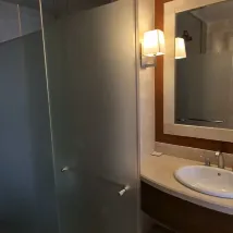 Ответ от объекта размещения: Благодарим вас за ценный отзыв. Мы рады слышать, что вы положительно оценили расположение отеля и ресторан внизу. Приносим извинения за неудобства, связанные с дизайном ванной комнаты. Мы рассмотрим возможность улучшения этого аспекта, основываясь на вашем ценном отзыве. Мы продолжим стремиться к улучшению обслуживания. Благодарим вас за поддержку.