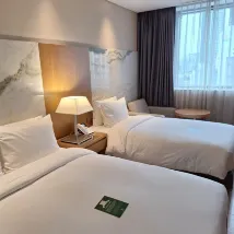 Отель находится в западной части, и по вечерам бывает немного шумно. Однако расположение просто отличное: совсем рядом с Лотте, и по вечерам работает много магазинов, где можно прогуляться. Выбор блюд на завтрак довольно скромный. На стойке регистрации все мужчины-сотрудники были очень радушны и профессиональны, в то время как женщины-администраторы показались довольно неприветливыми.