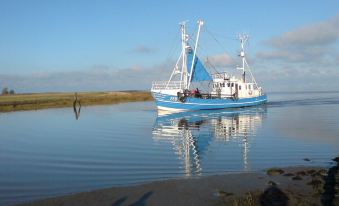 The numerous shops and restaurants in Burhave, the largest town on the Butjadingen peninsula, are within easy walking distance. The North Sea dike, the North Sea lagoon, the green beach of Burhave or the play barn is about 1 km. Furthermore, the location of the apartment provides a great starting point to explore Butjadingen on the excellent signposted cycle path network.